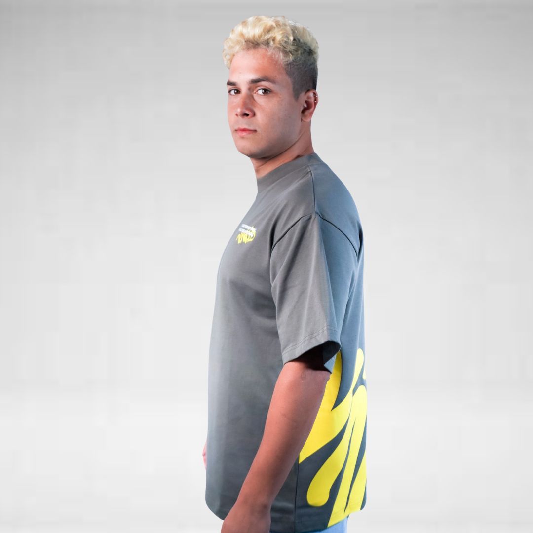 T-shirt made of high quality cotton 300gr, Design “Viwid grafity” on the front and back, all in black yelow.
